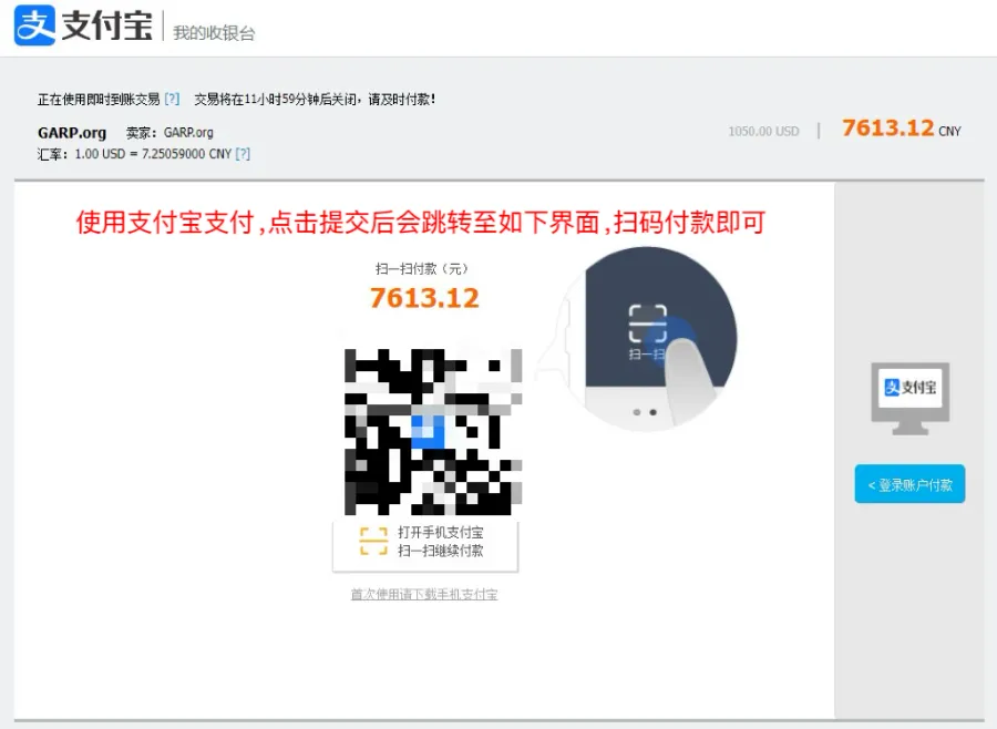 10.若选择支付宝支付,则其余步骤不变,点击提交后进行支付,报名成功!