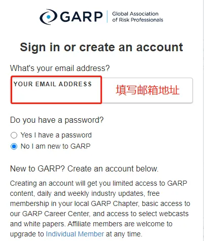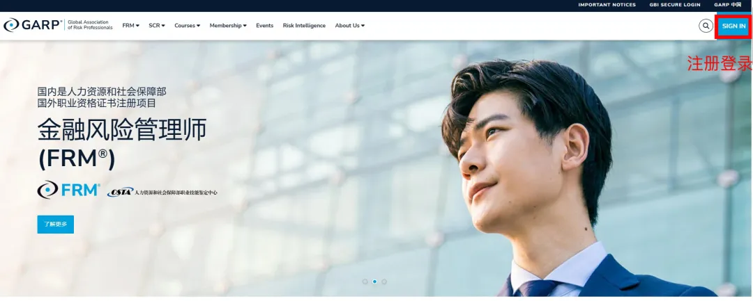 1.登入GARP协会官网https://www.garp.org/,点击右上角SIGN IN注册账号。